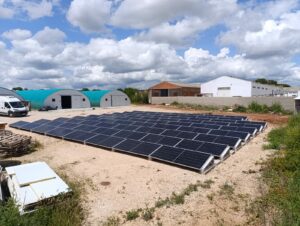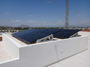 Instalación FV Solar en Guadalajara con soporte de hormigón 15º horizontal, lastre y sistema SAP50