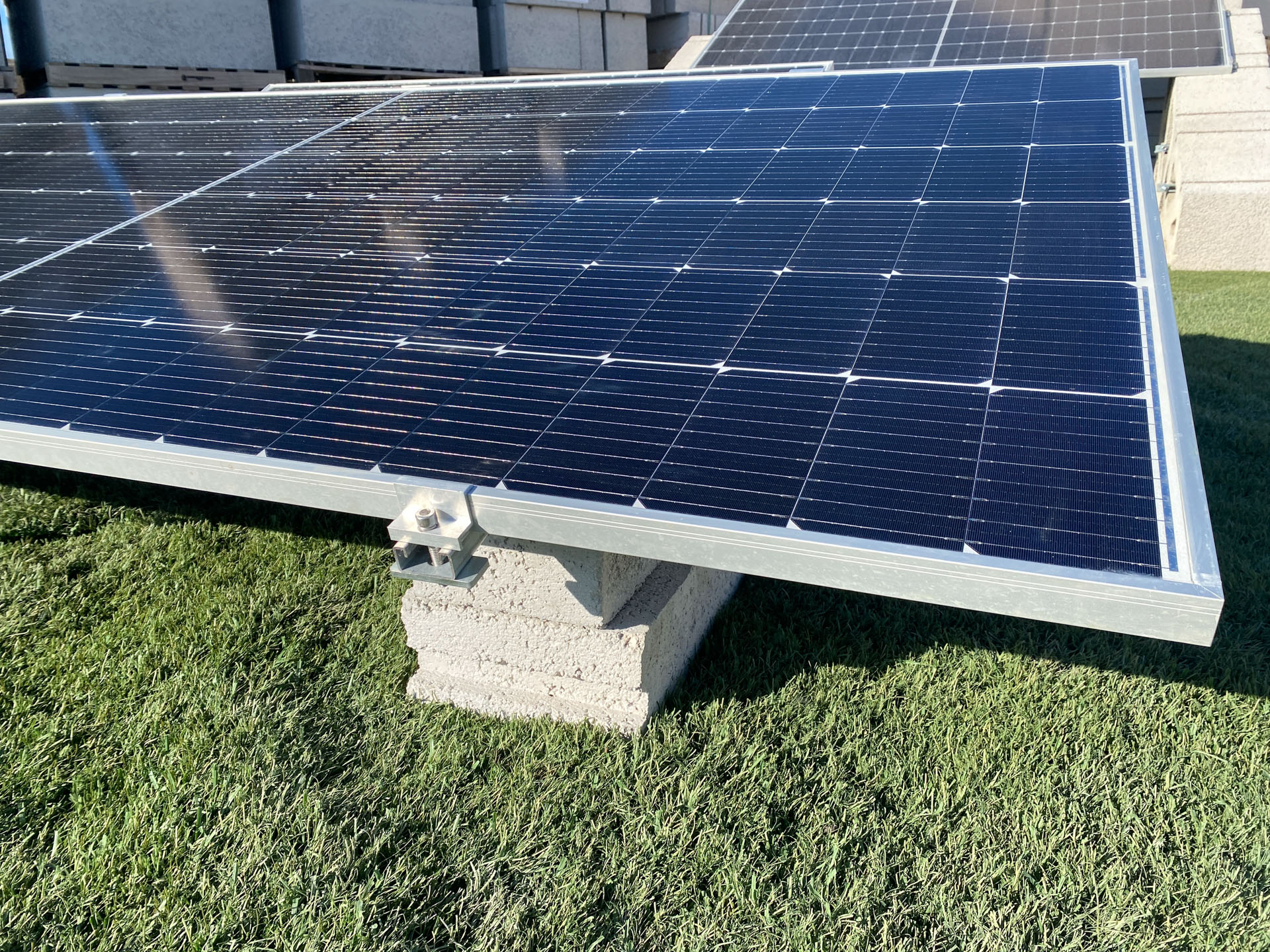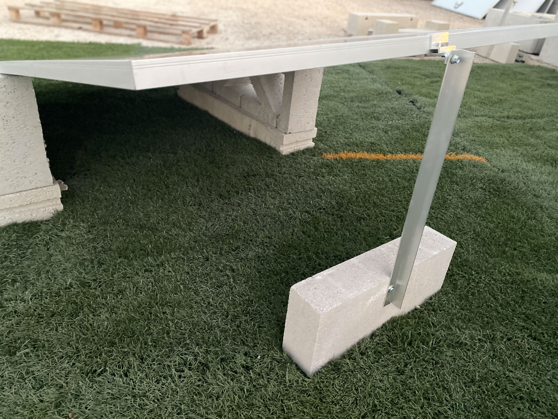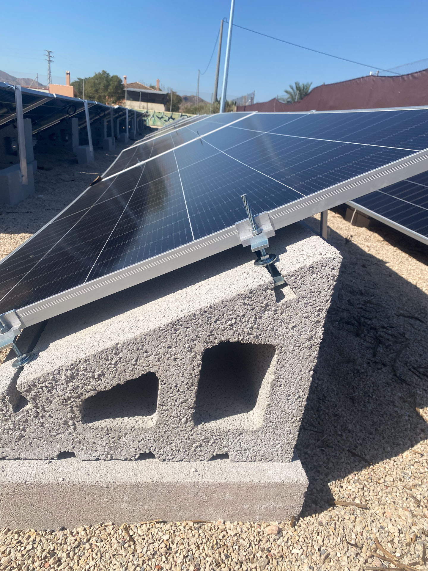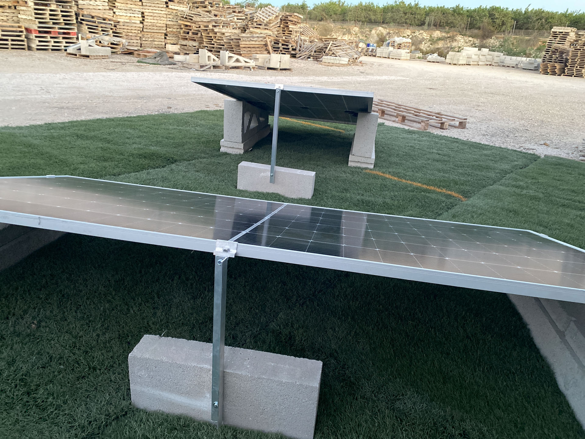 El soporte de hormigón de 25 grados está especialmente diseñado para huertos solares y grandes instalaciones sobre terreno llano. Su estructura maciza en tres piezas machihembradas permite montar de forma segura dos paneles por conjunto, sin necesidad de cimentación ni estructuras metálicas adicionales.