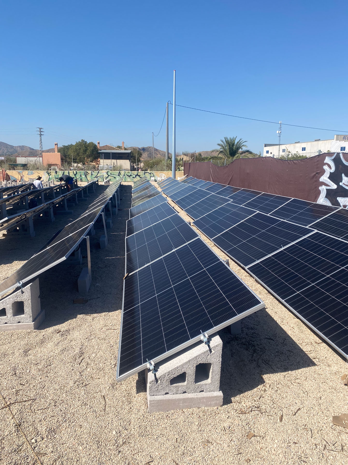 En Hormicad fabricamos soportes de hormigón con estructura de aluminio regulable, diseñados específicamente para proyectos fotovoltaicos en suelo. Esta solución modular permite ajustar la inclinación entre 15º y 30º, optimizando la producción energética según la ubicación y época del año.